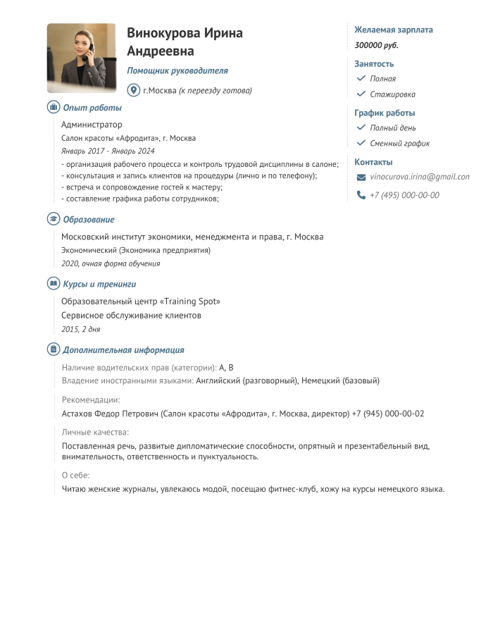 г. МоскваРаньше я не знал, с чего начать. Я оценил четкие указания и подсказки при заполнении информации. Конструктор предлагает различные варианты форматирования и дизайна — это очень помогает выделиться.